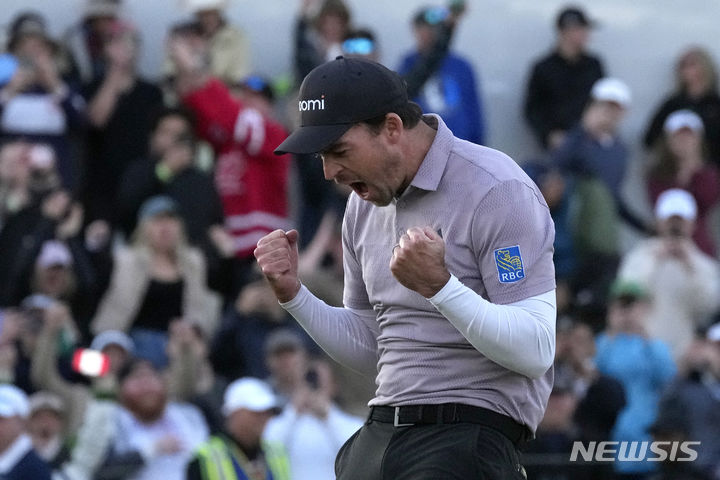 [스코츠데일=AP/뉴시스] 닉 테일러(캐나다)가 11일(현지시각) 미 애리조나주 스코츠데일의 TPC 스코츠데일에서 열린 미국프로골프(PGA) 투어 WM 피닉스 오픈 최종 라운드 연장전에서 승리하며 환호하고 있다. 테일러는 최종 합계 21언더파 263타로 찰리 호프먼(미국)과 동타를 이뤄 연장 끝에 우승, 통산 4번째 우승컵을 들었다. 2024.02.12.