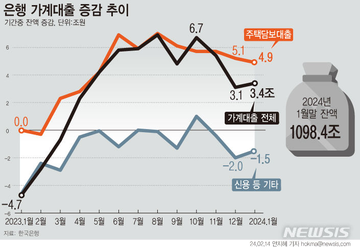 [그래픽] 주담대 증가 폭, 1월 기준 역대 2번째 높아