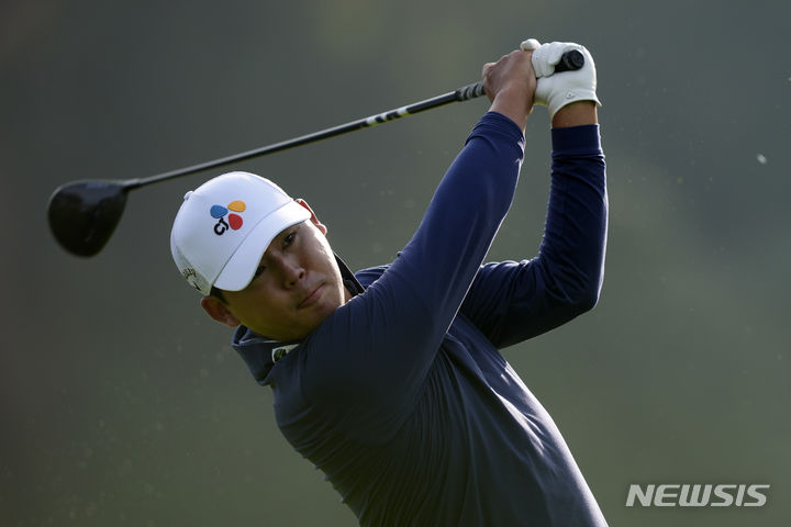 [로스앤젤레스=AP/뉴시스] 김시우가 16일(현지시각) 미 캘리포니아주 로스앤젤레스 퍼시픽 팰리세이즈의 리비에라 컨트리클럽에서 열린 미국프로골프(PGA) 투어 2024 제네시스 인비테이셔널 2라운드 2번 홀에서 티샷하고 있다. 김시우는 중간 합계 1오버파 143타 공동 49위를 기록했다. 2024.02.17.