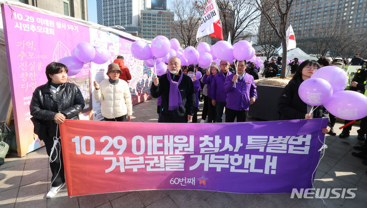 '참사 외면, 거부권남발 규탄' 159개 보라색 풍선 행진