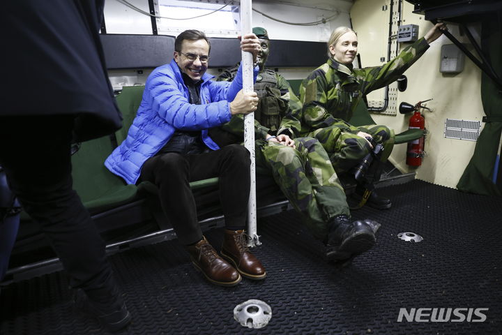 [스톡홀름=AP/뉴시스] 울프 크리스테르손(왼쪽) 스웨덴 총리가 20일(현지시각) 스톡홀름에서 우크라이나에 대한 지원책 발표 이후 베르가 해군기지를 방문해 전투정 90H(CB90H) 승선 체험을 하고 있다. 앞서 스웨덴은 우크라이나에 6억8300만 달러(9100억 원)를 지원한다고 발표했다. 2024.02.21.