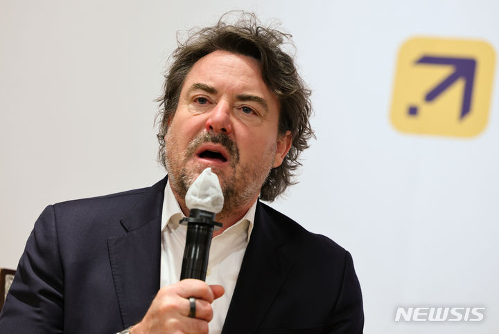 [서울=뉴시스] 최진석 기자 = 존 지젤만 익스피디아 브랜드 대표이사가 21일 서울 중구 롯데호텔에서 열린 호텔스닷컴 코리아 20주년 기자간담회에서 발언하고 있다. 2024.02.21. [email protected]