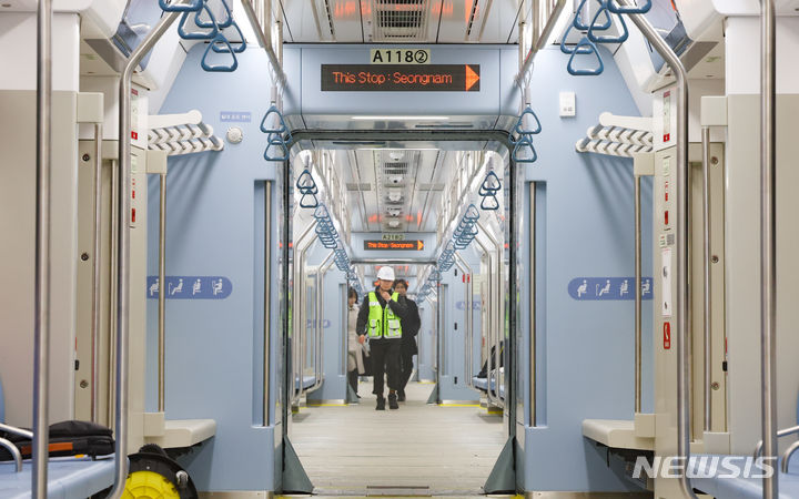 [서울=뉴시스] 황준선 기자 = 23일 오전 서울 강남구 수서역에서 오는 3월 30일 개통을 앞두고 영업시운전을 나서는 수도권광역급행철도(GTX)-A 수서-동탄 구간 열차가 취재진에게 공개되고 있다. 2023.02.23. [email protected]