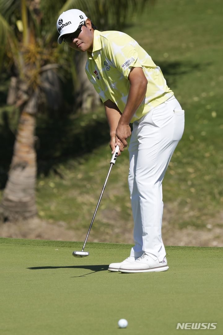 [푸에르토 바야르타=AP/뉴시스] 김성현이 23일(현지시각) 멕시코 푸에르토 바야르타의 비단타 바야르타 GC에서 열린 미국프로골프(PGA) 투어 멕시코 오픈 2라운드 9번 그린에서 퍼팅하고 있다. 김성현은 중간 합계 1오버파 143타 공동 86위로 이경훈과 동반 컷 탈락했다. 2024.02.24.