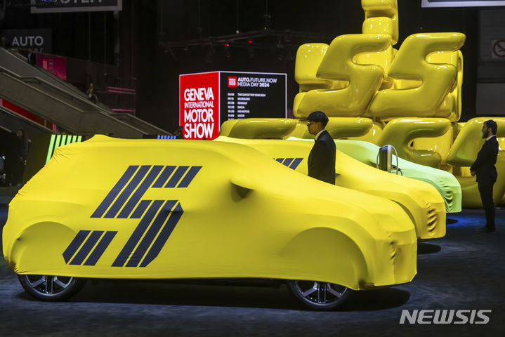 [제네바=AP/뉴시스] 26일(현지시각) 스위스 제네바에서 열리는 제91회 제네바 국제 모터쇼(GIMS)를 앞두고 열린 미디어 행사 중 한 남성이 르노 전시관 내 베일에 싸인 자동차 사이를 지나고 있다. 올해 GIMS는 27일부터 다음 달 3일까지 이어진다. 2024.02.26.