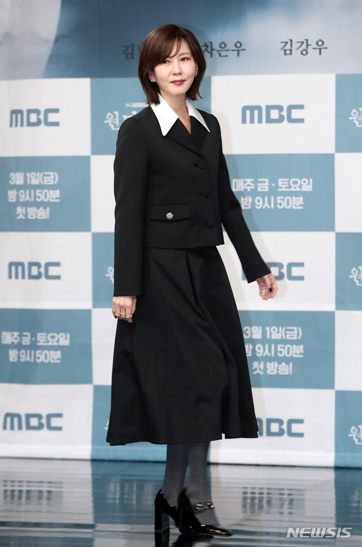 [서울=뉴시스] 김혜진 기자 = 배우 김남주가 29일 오후 서울 마포구 MBC에서 열린 새 금토드라마 '원더풀 월드' 제작발표회에 참석하고 있다. 2024.02.29. [email protected]