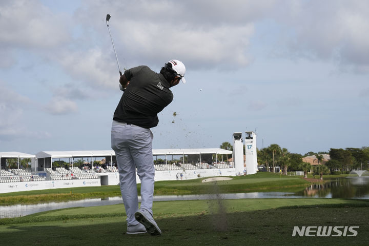 [팜비치가든스=AP/뉴시스] 김성현이 지난달 29일(현지시각) 미 플로리다주 팜 비치 가든스의 PGA 내셔널 리조트 챔피언 코스에서 미국프로골프(PGA) 투어 코그니전트 클래식 첫날 17번 홀에서 티샷하고 있다. 김성현은 7언더파 64타로 채드 레이미(미국)와 공동 선두에 올랐다. 2024.03.01.