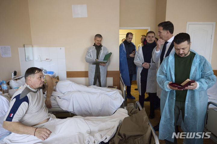 네덜란드 총리와 부상병 격려하는 젤렌스키 대통령