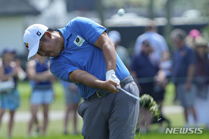[올랜도=AP/뉴시스] 안병훈이 9일(현지시각) 미 플로리다주 올랜도의 베이힐 클럽&로지에서 열린 미국프로골프(PGA) 투어 아널드 파머 인비테이셔널 3라운드 1번 페어웨이에서 샷하고 있다. 전날 공동 10위였던 안병훈은 중간 합계 이븐파 216타 공동 31위로 내려 앉았다. 2024.03.10.