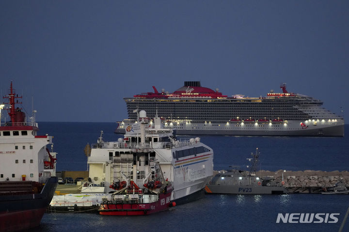 [라르나카=AP/뉴시스] 11일(현지시각) 키프로스 라르나카 항구에서 약 200톤의 쌀과 밀가루, 물 등 인도적 지원 물품을 가자지구로 수송할 국제구호단체 '오픈 암스' 소속 선박(붉은색)이 출항 준비를 하고 있다. 우르줄라 폰데어라이엔 유럽연합(EU) 집행위원장은 "국제 공여국들이 지난 5개월간의 전쟁으로 광범위한 기아에 직면한 가자지구에 해상을 통해 물품을 지원하는 첫 사례가 될 것"이라고 밝혔다. '오픈 암스' 호의 정확한 출항 일정은 보안을 이유로 알려지진 않았다. 2024.03.12.