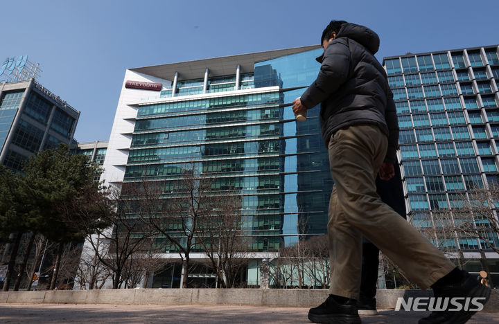 [서울=뉴시스] 조성우 기자 = 워크아웃 절차가 진행 중인 태영건설이 자본잠식 상태에 놓여 주식 거래가 정지됐다. 지난 13일 전자공시시스템에 따르면 태영건설은 지난해 말 기준 자본 총계가 마이너스 5626억 원으로 집계돼 자산보다 부채가 많아진 자본잠식 상태에 들어갔다. 자본잠식이 되면 주식은 유가증권시장 공시 규정에 따라 거래가 즉시 정지된다. 사진은 14일 오후 서울 영등포구 여의도 태영건설 본사. 2024.03.14. [email protected]