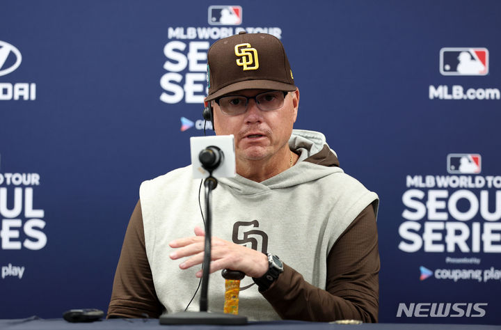[서울=뉴시스] 김선웅 기자 = 샌디에이고 파드리스 마이크 쉴트 감독이 21일 서울 고척스카이돔에서 열린 미국프로야구(MLB) 서울시리즈 샌디에이고 파드리스 vs LA 다저스 2차전 경기를 앞두고 기자회견을 하고 있다. 2024.03.21. [email protected]