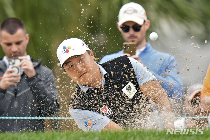 [팜하버=AP/뉴시스] 이경훈이 22일(현지시각) 미국 플로리다주 팜하버의 이니스브루크 리조트에서 열린 미국프로골프(PGA) 투어 발스파 챔피언십 2라운드 17번 홀 벙커에서 샷하고 있다. 첫날 공동 72위였던 이경훈은 일몰로 일부 선수들의 경기가 중단된 가운데 중간 합계 4언더파 138타, 공동 15위까지 올라갔다. 2024.03.23.