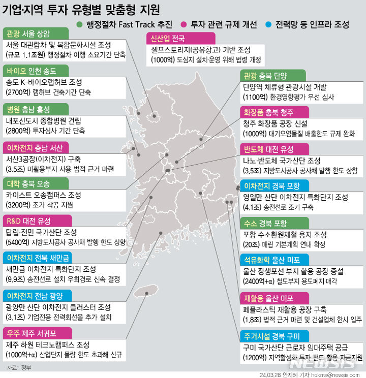 [서울=뉴시스] 정부가 고금리, 프로젝트파이낸싱(PF) 불확실성 등으로 투자 둔화 우려가 제기되고 있는 기업·지역의 18개 투자 프로젝트의 정상 가동을 지원한다. 18개 프로젝트 규모를 합하면 최대 47조2000억원에 달한다. (그래픽=안지혜 기자)