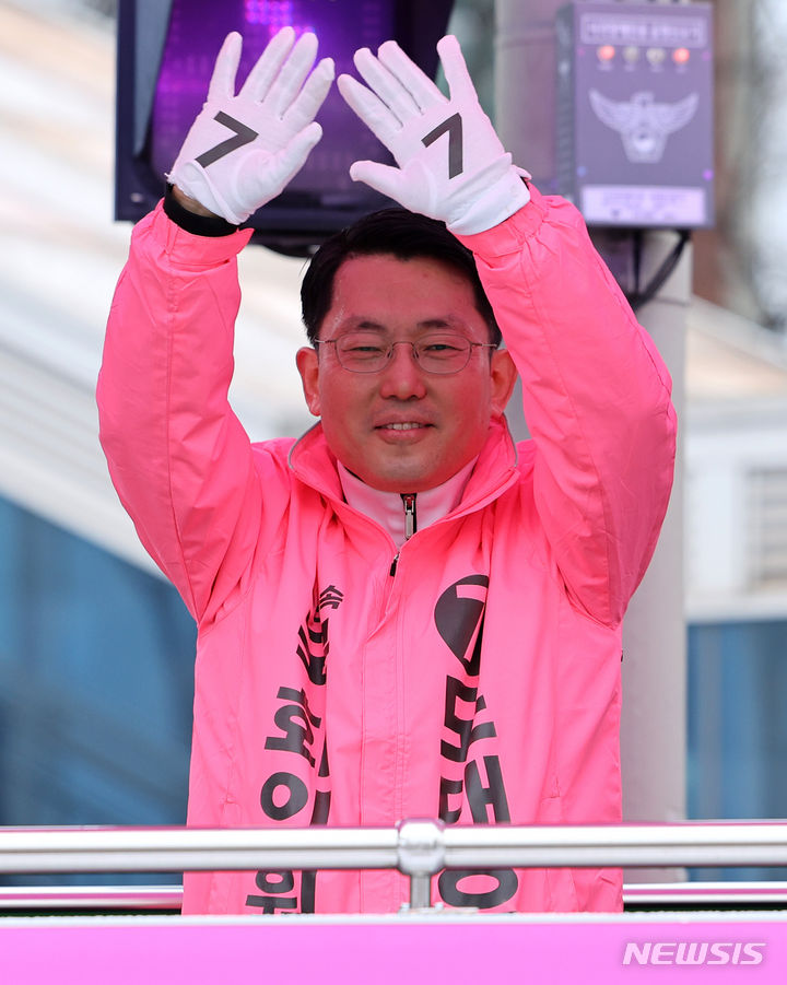 [대구=뉴시스] 이무열 기자 = 제22대 총선 공식 선거운동 첫날인 28일 오전 대구 중·남구에 출마하는 도태우 무소속 후보가 대구 중구 명덕네거리에서 시민들에게 출근길 인사를 하고 있다. 2024.03.28. [email protected]