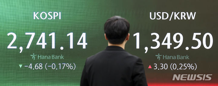 [서울=뉴시스] 정병혁 기자 = 29일 서울 중구 하나은행 딜링룸에서 직원들이 업무를 보고 있다. 코스피는 전 거래일(2745.82)보다 11.45포인트(0.42%) 오른 2757.27에 , 코스닥 지수는 전 거래일(910.05)보다 2.26포인트(0.25%) 상승한 912.31에 거래를 시작했다. 서울 외환시장에서 원·달러 환율은 전 거래일(1346.2원)보다 3.5원 오른 1359.7원에 출발했다. 2024.03.29. [email protected]