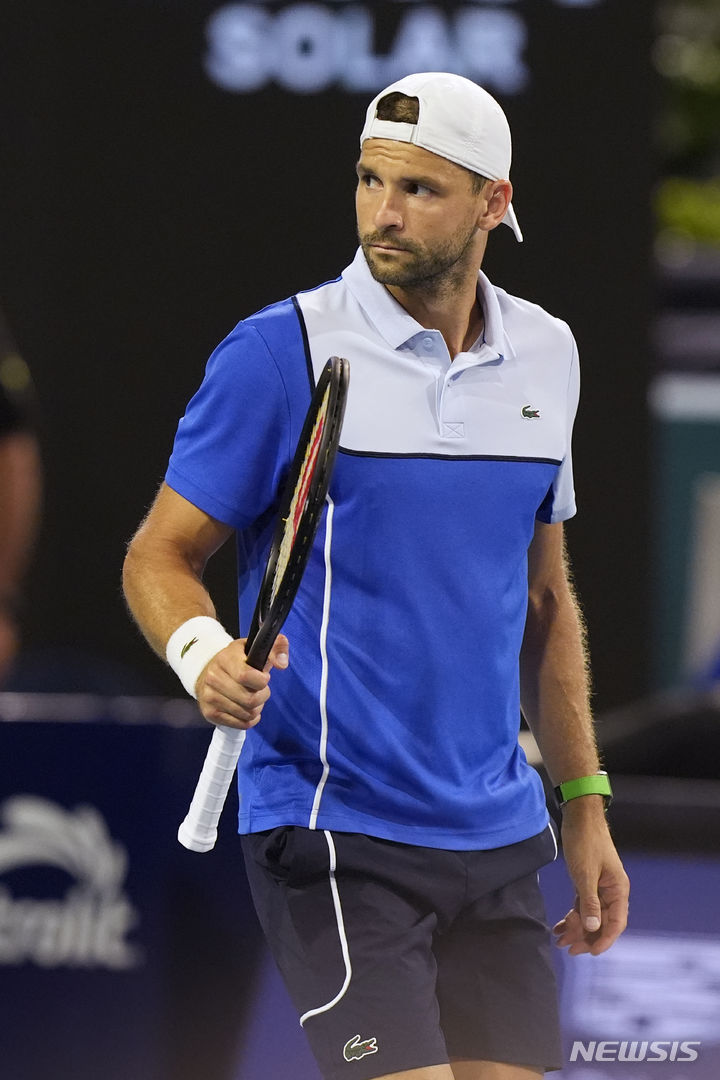 [마이애미=AP/뉴시스] 그리고르 디미트로프(12위·불가리아)가 29일(현지시각) 미 플로리다주 마이애미의 마이애미 가든스에서 열린 남자프로테니스(ATP) 투어 마이애미오픈 단식 준결승전에서 알렉산더 즈베레프(5위·독일)와 경기하고 있다. 카를로스 알카라스(2위·스페인)를 꺾고 올라온 디미트로프가 2-1(6-4 6-7 6-4)로 승리하고 결승에 올라 얀니크 신네르(3위·이탈리아)와 우승을 다툰다. 2024.03.30.