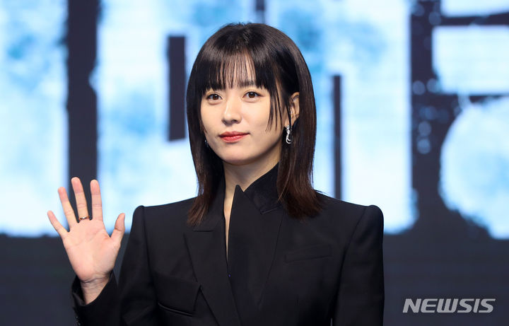 [서울=뉴시스] 김혜진 기자 = 배우 한효주가 8일 오전 서울 영등포구 콘래드 서울에서 열린 디즈니+ 오리지널 시리즈 '지배종' 제작발표회에서 포즈를 취하고 있다. 2024.04.08. [email protected]