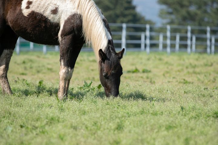 [서울=뉴시스] 9일 제주 제주시 농촌진흥청 국립축산과학원 난지축산연구소 초지에서 RDA승용마(국내산 승용마)가 풀을 뜯고 있다. 농촌진흥청 국립축산과학원은 생활승마용으로 육성중인 RDA승용마를 한라산 중간산 지역에 위치한 난지축산연구소 초지에 방목했다. (사진=농촌진흥청 제공) 2024.04.09. [email protected] *재판매 및 DB 금지