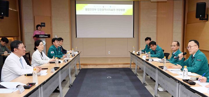 [서울=뉴시스] 이한경 행정안전부 재난안전관리본부장이 12일 인천의료원을 방문해 전공의 집단행동 대응과 관련해 지역 필수의료 대응상황 점검 및 현장 의견을 청취하고 있다. (사진=행정안전부 제공) 2024.04.12. [email protected] *재판매 및 DB 금지