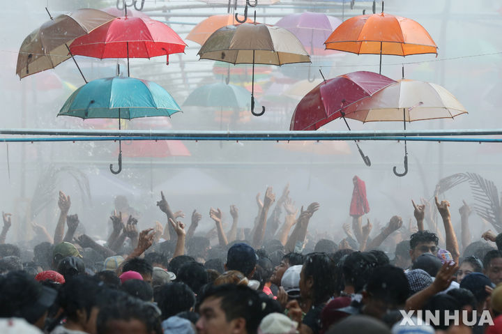 [양곤=신화/뉴시스] 15일(현지시각) 미얀마 양곤에서 사람들이 신년 물 축제를 축하하고 있다. 미얀마 제2 도시 만달레이에서는 물 축제 행사장에서 폭발물이 터져 어린이 등 12명이 다친 것을 알려졌다. 2024.04.16.