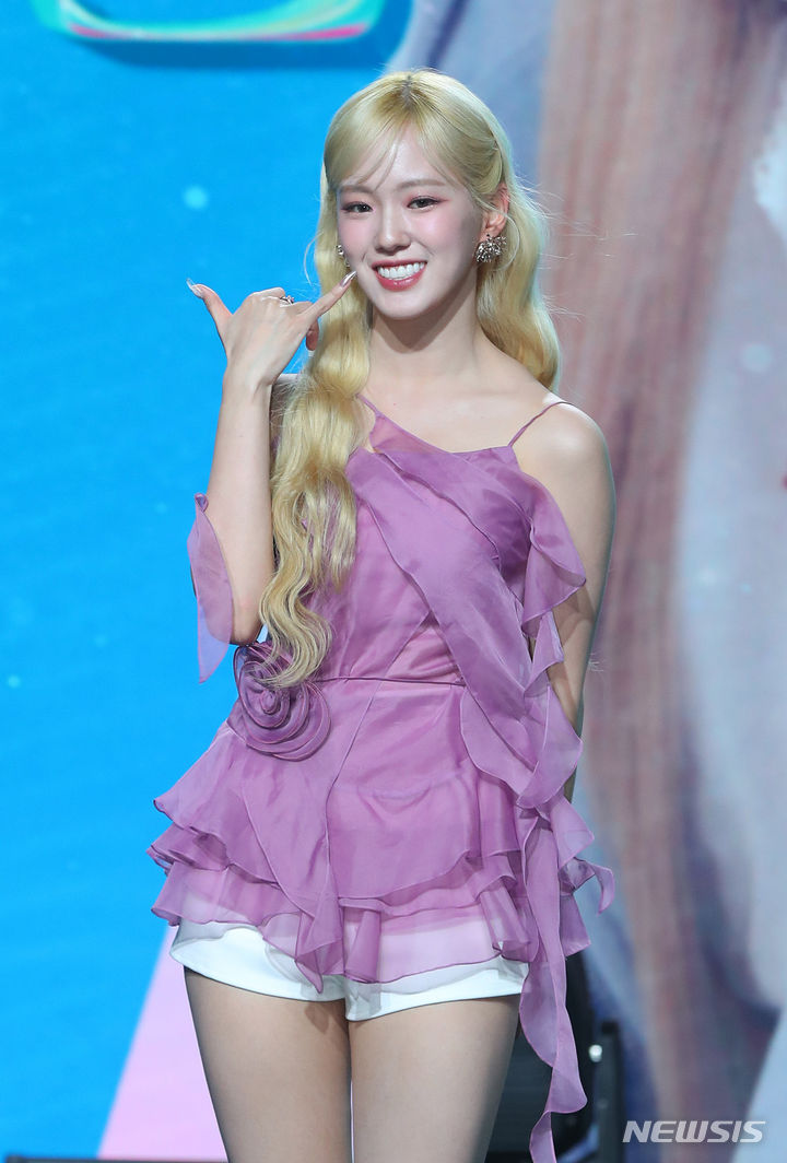 [서울=뉴시스] 김혜진 기자 = 그룹 비웨이브 윤슬이 17일 오후 서울 강남구 일지아트홀에서 열린 첫 번째 미니앨범 '비:웨이브'(BE:WAVE) 발매 기념 쇼케이스에서 포즈를 취하고 있다. 2024.04.17. [email protected]