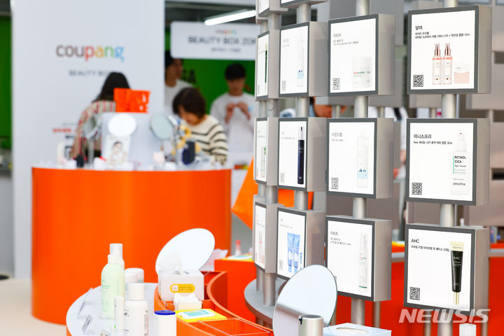 [서울=뉴시스] 황준선 기자 = 19일 서울 성동구 성수 피치스 도원에서 열린 쿠팡 메가 뷰티쇼를 찾은 방문객들이 전시 제품을 둘러보고 있다. 쿠팡 메가뷰티쇼는 고객 참여형 뷰티 체험관으로 빌리프, 닥터지, 에스트라, 웰라쥬 등 국내외 인기 브랜드 15개가 참여한다. 2024.04.19. [email protected]