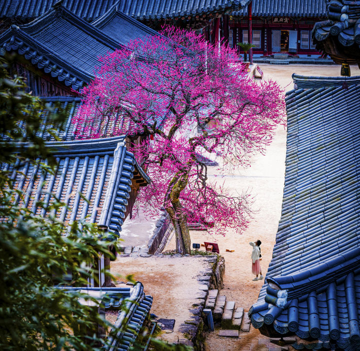 [서울=뉴시스] 대한불교조계종 19교구 지리산 대화엄사 교구장 덕문 스님은 23일 2024 제4회 화엄사 홍매화·들매화 사진 콘테스트의 응모작 심사 결과 수상작들을 발표했다. 사진은 전문 프로작가 사진 콘테스트 포교원장상 수상작인 문주환씨의 '고고한 자태의 홍매화와 여인'. (사진=화엄사 제공) 2024.04.23. [email protected] *재판매 및 DB 금지