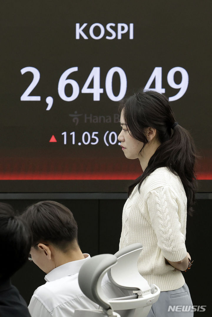 [서울=뉴시스] 최동준 기자 = 코스피가 전 거래일보다 2.72포인트(0.10%) 오른 2629.44로 장을 시작한 23일 서울 중구 하나은행 딜링룸에서 딜러들이 업무를 보고 있다. 2024.04.23. [email protected]