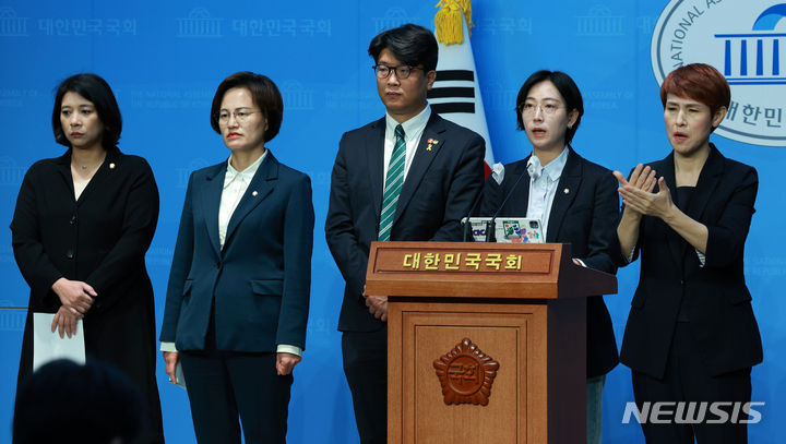 [서울=뉴시스] 고범준 기자 = 장혜영 녹색정의당 원내대표 직무대행이 25일 오전 서울 여의도 국회 소통관에서 제21대 국회 '양심과 책임' 위한 10대 법안 입법 촉구 기자회견을 하고 있다. 2024.04.25. [email protected]