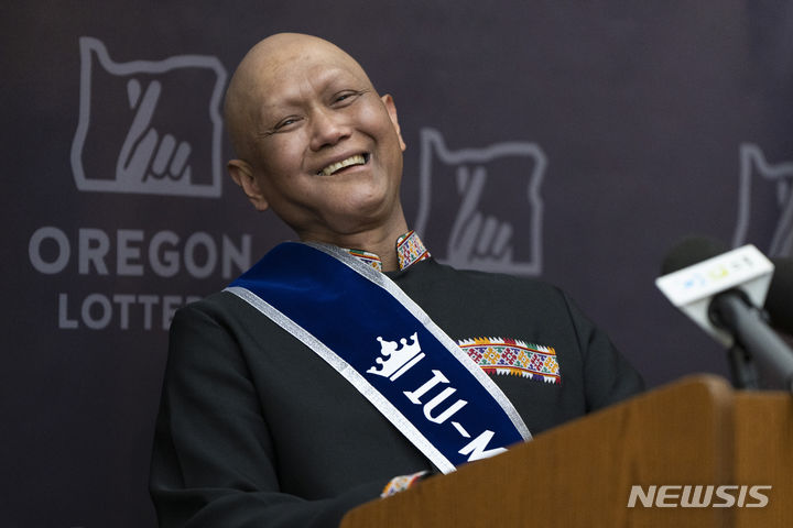 [세일럼=AP/뉴시스] 29일(현지시각) 미 오리건주 세일럼에서 라오스 출신 이민자 쳉 "찰리" 새판(46)이 파워볼 1등 당첨자 기자회견에 참석해 소감을 말하고 있다. 13억 달러(약 1조8000억 원)에 당첨된 쳉 새판은 지난 2016년 암 진단을 받아 지금까지 항암 치료 중이며 "당첨금을 다 쓸 시간이 있을지, 얼마나 살 수 있을지 모르겠다"라고 소감을 말했다. 오리건주는 예외적인 경우가 아니면 복권 당첨자의 신분을 공개한다. 2024.04.30.