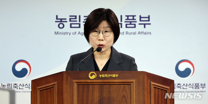 [세종=뉴시스] 강종민 기자 = 박수진 농림축산식품부 식량정책실장이 지난달 30일 세종시 정부세종청사에서 농수산물 유통구조 개선 방안을 발표하고 있다. 농수산물 유통비용 10% 이상 절감을 목표로 한 이번 방안은 공영도매시장의 공공성·효율성 제고, 농산물 온라인 도매시장 활성화, 산지 유통 규모화·효율화, 소비자 유통 환경 개선 등이 담겨 있다. 2024.05.01. [email protected]