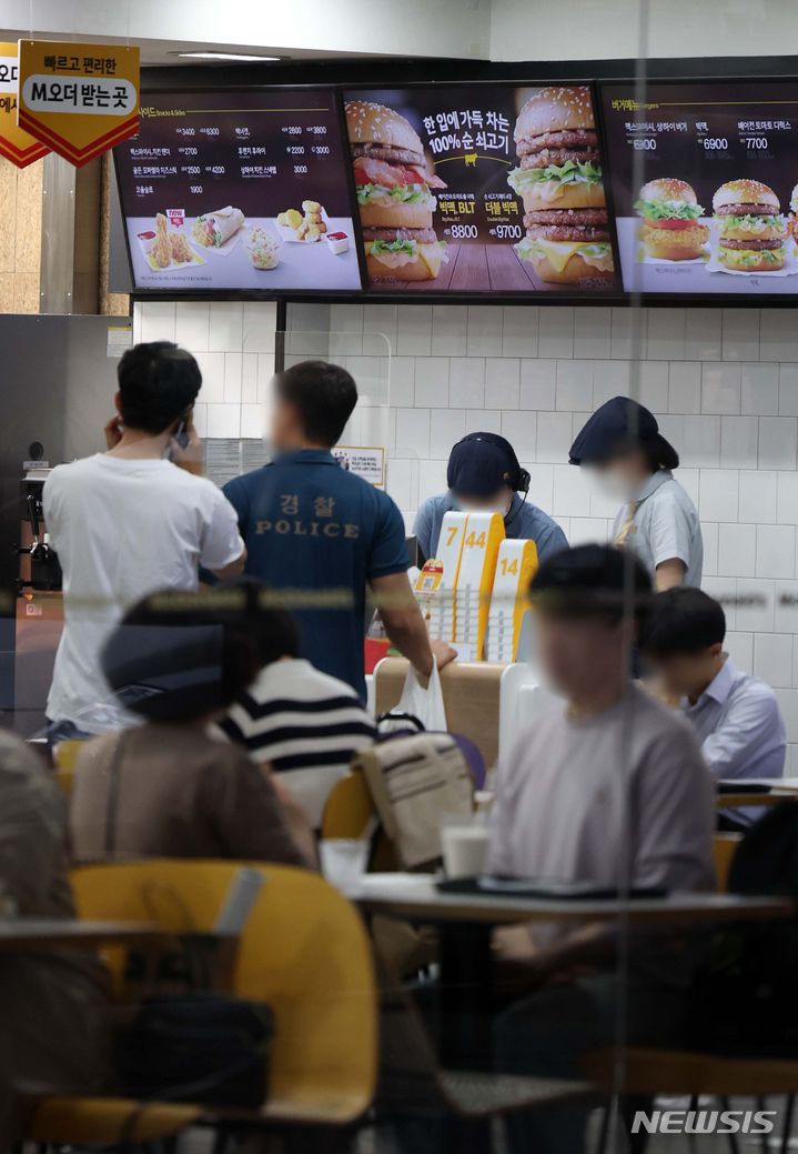 [서울=뉴시스] 김선웅 기자 = 맥도날드가 2일부터 일부 메뉴 국내 판매 가격을 인상한다. 인상 대상은 햄버거, 치즈버거, 불고기 버거 등 16개 품목으로 메뉴별로 100원~400원 인상되며 평균 인상률은 약 2.8%다. 인기 메뉴인 빅맥과 맥스파이시 상하이 버거의 단품 가격은 변동이 없다. 1일 서울 소재 맥도날드 매장이 운영되고 있다. 2024.05.01. [email protected]