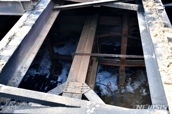 [광주=뉴시스] 변재훈 기자 = 2일 오전 광주 남구 봉선동 도시철도 2호선 4공구 공사 화재 현장에서 복공판 내부가 검게 그을려 있고 소화기가 나뒹굴고 있다. 이날 화재는 용접 도중 발생한 것으로 추정되며, 작업자 11명은 대피해 인명 피해는 없었다. 2024.05.02. [email protected]
