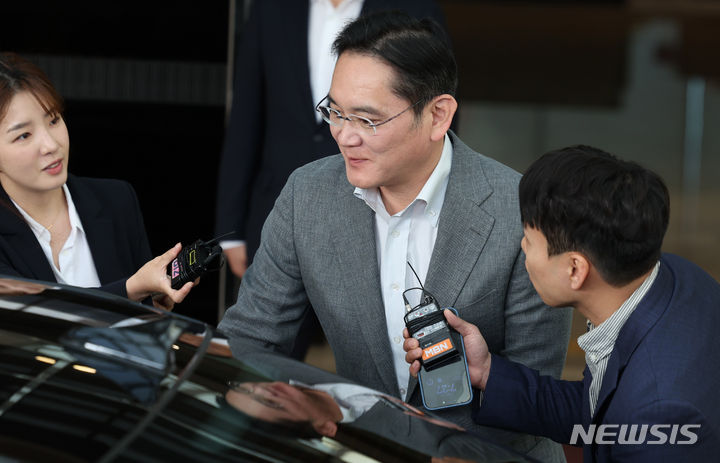 [서울=뉴시스] 추상철 기자 = 이재용 삼성전자 회장이 3일 오전 서울 강서구 김포비즈니스항공센터에서 유럽 출장을 마친 후 귀국하고 있다. 2024.05.03. [email protected]