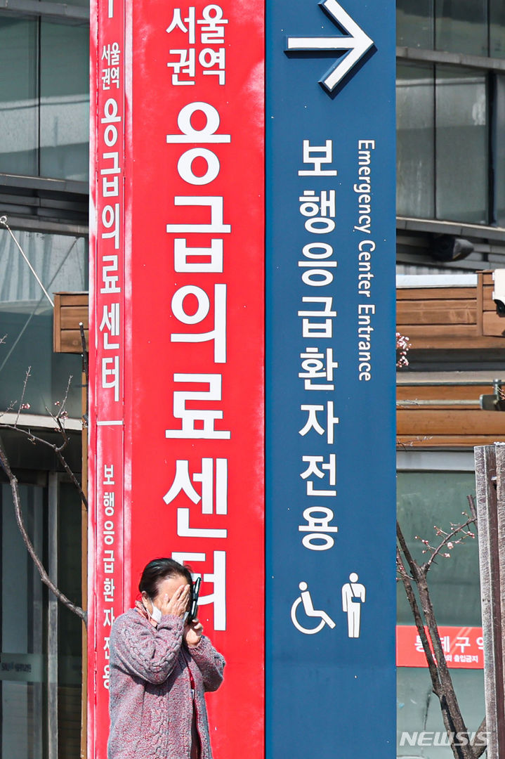 [서울=뉴시스] 뉴시스 권창회 기자가 8일 한국사진기자협회 제255회 이달의 보도사진상 뉴스 부문에서 '의료대란 장기화, 피해는 국민이 진다'로 우수상을 수상했다. 사진은 지난 3월 10일 전공의 집단사직으로 의료대란이 장기화되고 있는 가운데 서울 시내 대학병원에서 응급실 인근에서 한 시민이 전화통화를 하며 흐느끼고 있다. 2024.05.08. [email protected]
