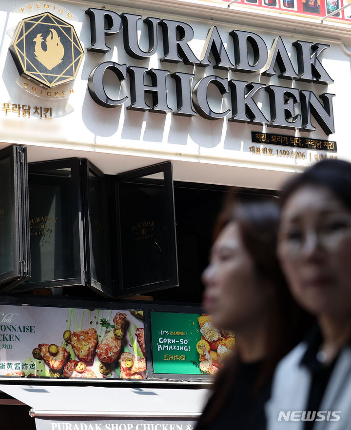 [서울=뉴시스] 홍효식 기자 = 9일 서울 시내 한 푸라닭 치킨 매장 앞으로 시민들이 발걸음을 옮기고 있다.