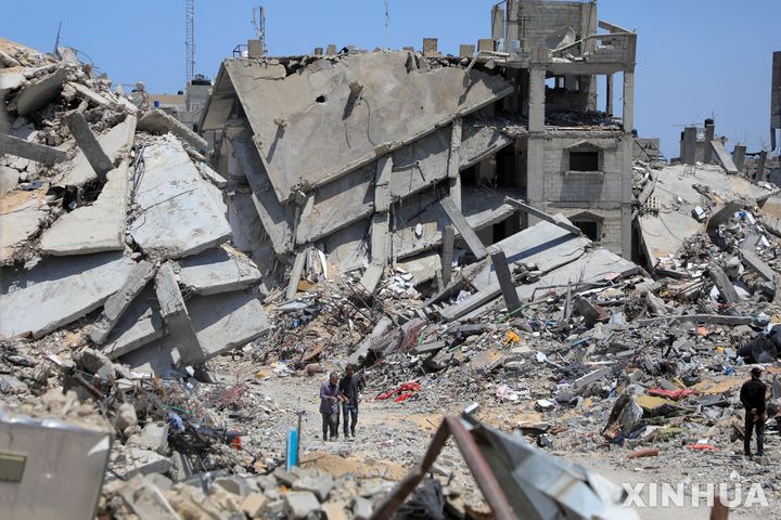 [가자지구=신화/뉴시스] 13일(현지시각) 가자지구 남부 칸유니스의 건물이 이스라엘의 공습으로 파괴돼 있다. 이스라엘군은 가자지구 북부에서 남부 라파에 이르기까지 공세를 강화했다고 밝혔다. 가자지구 보건부는 이스라엘군의 공격으로 인한 팔레스타인인 사망자 수는 3만5091명으로 늘었다고 발표했다. 2024.05.14.