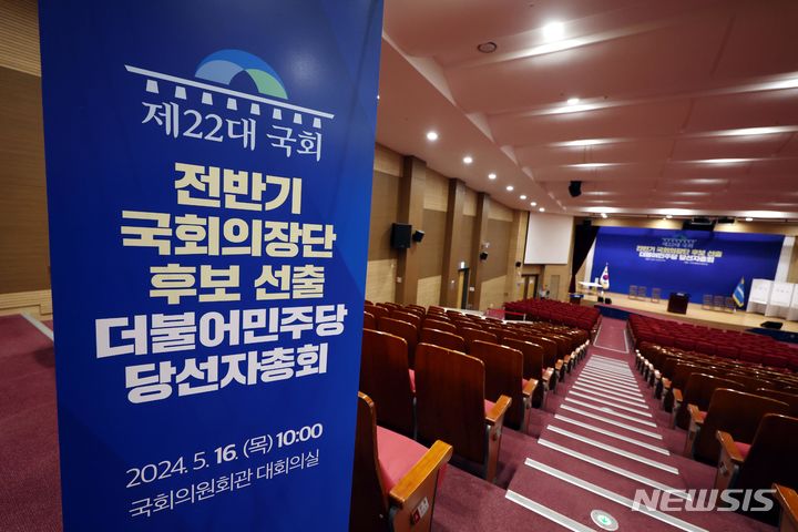 [서울=뉴시스] 조성봉 기자= 15일 오후 서울 여의도 국회 의원회관 대회의실에 제22대 국회 더불어민주당 전반기 국회의장 및 국회부의장 선거 후보자 선출 관련 기표소가 설치되어 있다. 2024.05.15. [email protected]