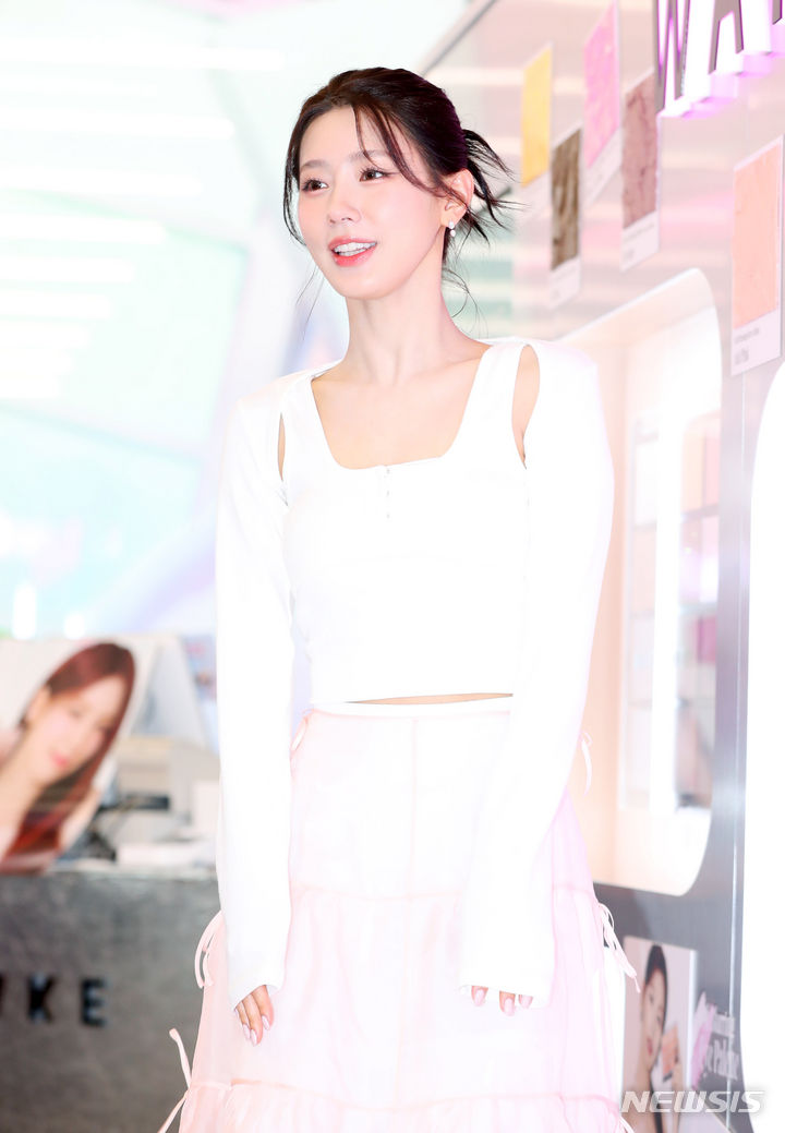 [서울=뉴시스] 김혜진 기자 = 그룹 (여자)아이들 미연이 16일 오후 서울 성동구 팩토리얼 성수에서 열린 뷰티 브랜드 웨이크메이크 단독 팝업스토어 오픈 행사에 참석하고 있다. 2024.05.16. [email protected]