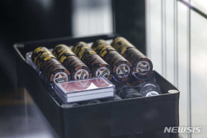 [서울=뉴시스] 정병혁 기자 = 오늘부터 포커게임의 일종인 '홀덤게임'을 제공하는 홀덤펍·카페에 청소년 출입과 고용이 금지된다. 여성가족부는 이날 이 같은 내용을 담은 '도박 및 사행심 조장 게임 제공업소 청소년 출입·고용금지업소 결정'을 고시했다. 이번 고시는 최근 심화되고 있는 청소년 도박 문제에 대응하고, 도박으로부터 청소년을 보호하기 위해 시행된다. 사진은 17일 서울시내 한 홀덤펍. 2024.05.17. [email protected]