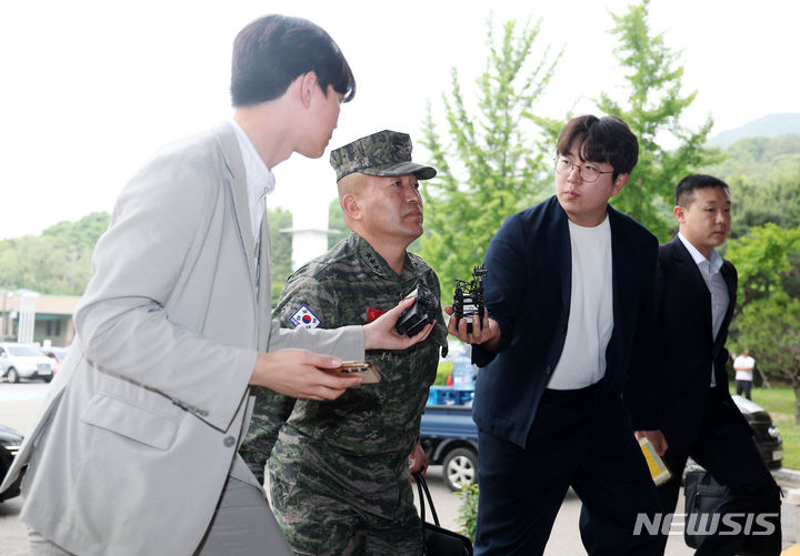 [과천=뉴시스] 김명년 기자 = 김계환 해병대사령관이 해병대 채모 상병 사망 사건 수사외압 의혹 관련 조사를 받기 위해 21일 오전 경기 정부과천청사 고위공직자범죄수사처(공수처)에 출석하고 있다. 2024.05.21. [email protected]
