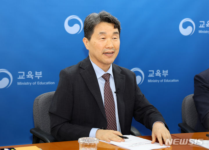 [서울=뉴시스] 배훈식 기자 = 이주호 사회부총리 겸 교육부 장관이 23일 오후 서울 종로구 정부서울청사에서 열린 교실혁명 선도교사 연수 화상 개회식에서 인사말을 하고 있다. 2024.05.23. [email protected]