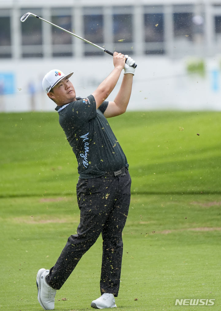 [포트워스=AP/뉴시스] 임성재가 24일(현지시각) 미 텍사스주 포트워스의 콜로니얼 CC에서 열린 미국프로골프(PGA) 투어 찰스 슈왑 챌린지 2라운드 17번 페어웨이에서 샷하고 있다. 임성재는 중간 합계 6언더파 134타 공동 4위로 올라섰다. 2024.05.25.
