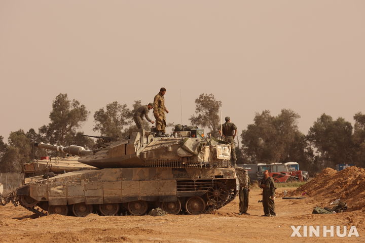 [가자지구=신화/뉴시스] 27일(현지시각) 이스라엘 남부, 가자지구 국경 부근에 이스라엘군이 주둔하고 있다. 이스라엘 국방군(IDF)은 이스라엘과 이집트군이 라파 국경 인근에서 교전을 벌였다고 확인했으며 이집트군 관계자는 이 교전으로 이집트군 1명이 숨졌다고 밝혔다. 2024.05.28.