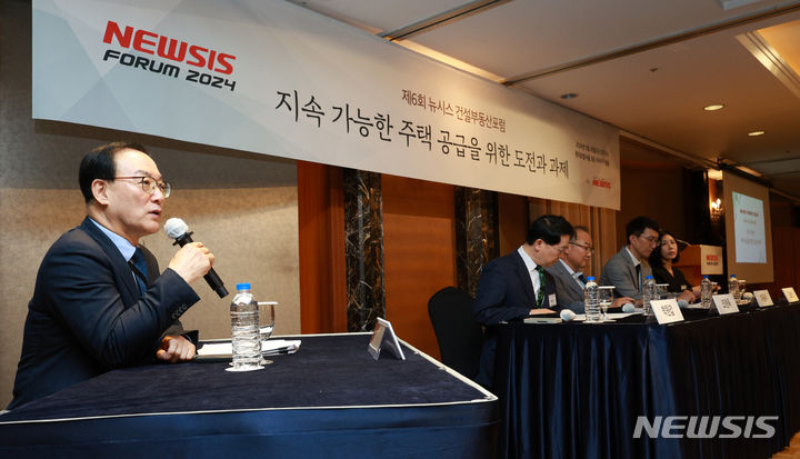 [서울=뉴시스] 고범준 기자 = 권대중 서강대학교 부동산학과 교수가 29일 오전 서울 중구 롯데호텔서울에서 열린 제6회 뉴시스 건설부동산포럼, '지속 가능한 주택 공급을 위한 도전과 과제'에서 발언하고 있다. 2024.05.29. [email protected]