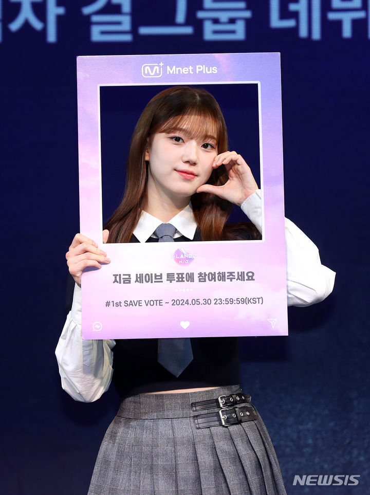 [서울=뉴시스] 김혜진 기자 = 아이랜드2 파트2 진출 후보자 박예은이 29일 오전 서울 강남구 성암아트홀에서 열린 Mnet '아이랜드2 : N/a' Part.2 PR DAY에서 포즈를 취하고 있다. 2024.05.29. [email protected]