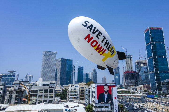 이스라엘 인질 가족이 띄운 석방 촉구 비행선