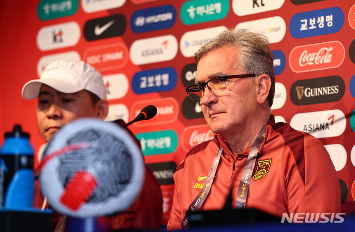 [서울=뉴시스] 김근수 기자 = 브란코 이반코비치 중국 축구국가대표팀 감독이 10일 오후 서울 마포구 상암월드컵경기장에서 한국전을 하루 앞두고 열린 공식 기자회견에서 취재진 질문에 답하고 있다. 2024.06.10. [email protected]