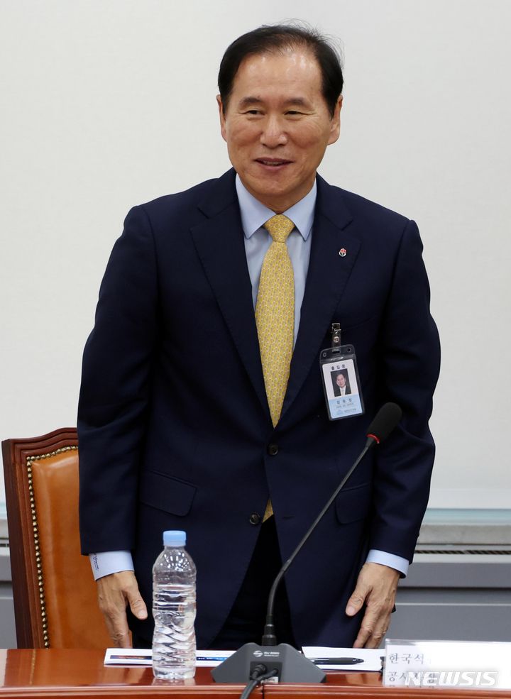 [서울=뉴시스] 조성봉 기자= 김동섭 한국석유공사 사장이 11일 오후 서울 여의도 국회에서 열린 에너지 특별위원회 1차 회의에서 위원들에게 인사를 하고 있다.  2024.06.11. [email protected]